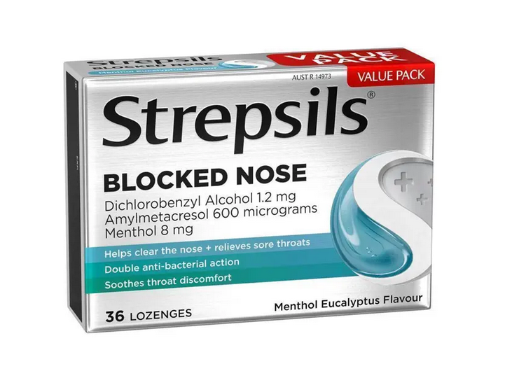 Strepsils Plus Blocked Nose Relief Throat Lozenges Menthol Eucalyptus 36 Pack
